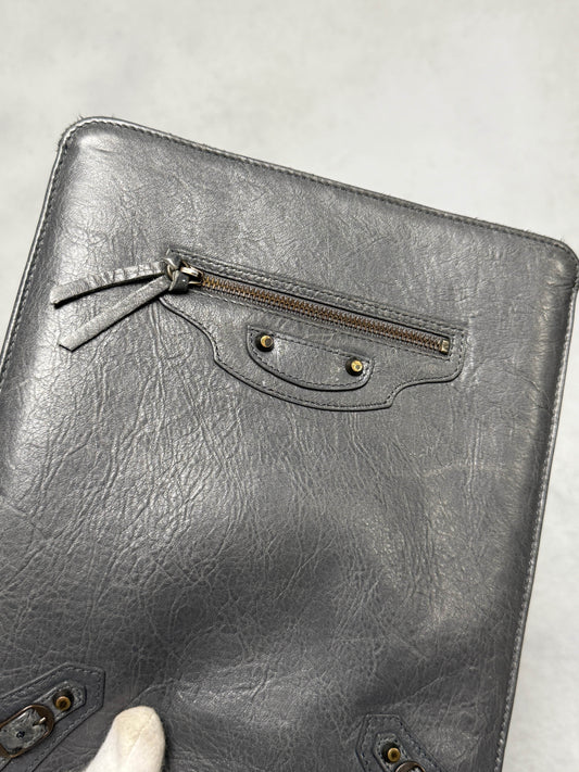Balenciaga Leather Moto Pochette Dark Grey
