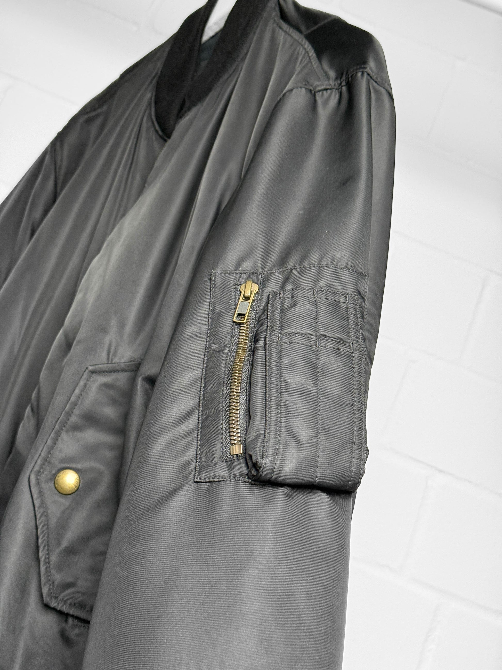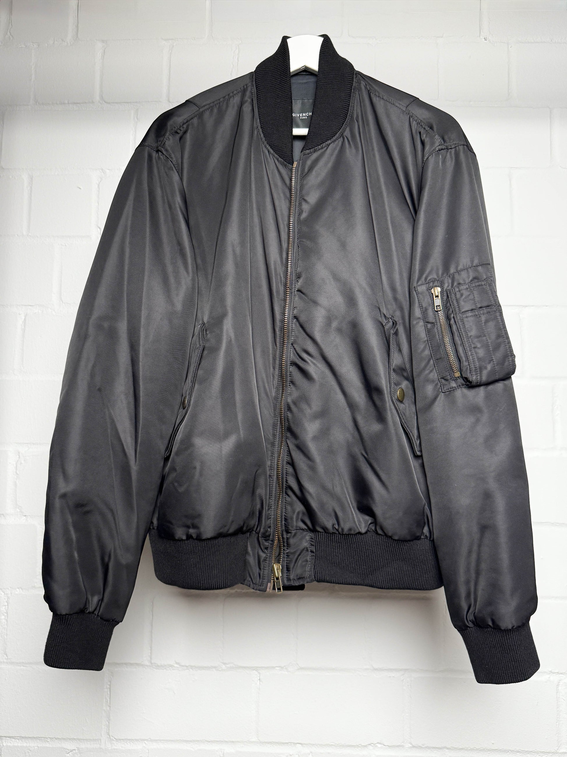 From Riccardo Tisci's 2013 Pre-Fall Collection. Just a great Bomber jacket with a beautiful and big back print, typical of Tisci's motif language. Satin-like material works great with the shape and lets the print shine. Wool collar and cuffs add the finishing touch. Perfect piece for Tisci collectors and everyone that loved his signature aesthetic at Givenchy.
